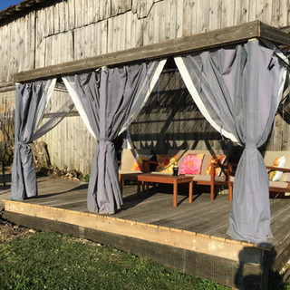 Shady Rest relaxation area - This is our ongoing project. Set up in 2016 as our social area, it is proving to be a very popular area for all guests, An area where you can sit, chill, sleep, play games or just read. This year we are concentrating on the rear outside garden. A fantastic place to sit and watch the sunsets or just relax at any time of day. It has proven to be very popular over the past 3 years therefore this winter we have built an undercover gazebo with comfy seating, fly screens and curtains. We cannot wait for our first guests to try it out.